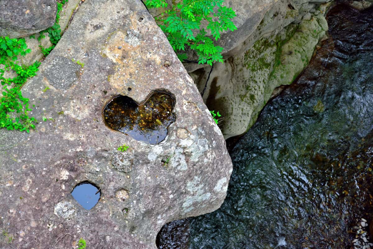 ちなみに、覗橋から磊々峡覗くと、自然にできたハート型の小さい岩のくぼみが見えます。カップルに人気のこのハートを羽生選手も見つけて笑顔になったのかもしれません。