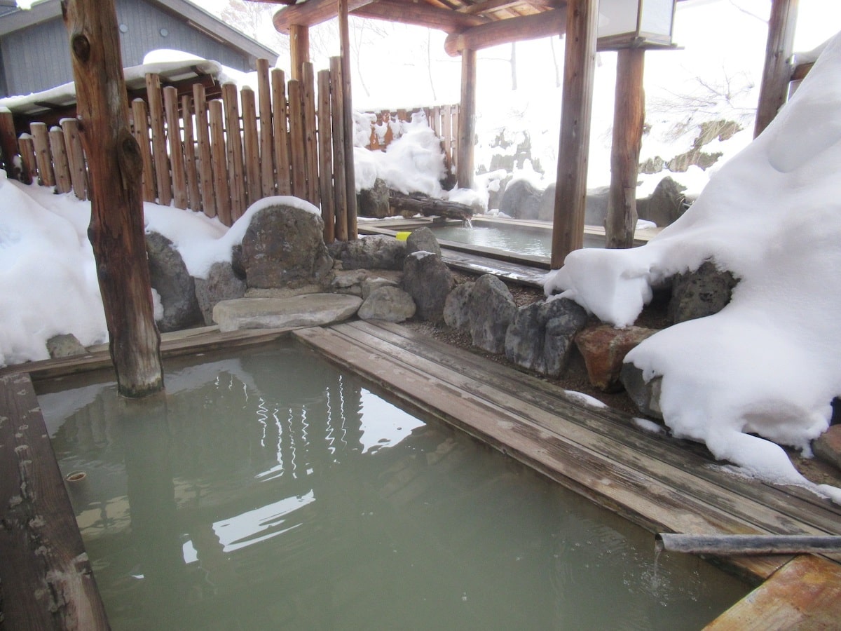 2つの異なる泉質のにごり湯が湧き出ており、混浴露天風呂や女性専用の露天風呂、男女専用の内風呂では硫黄温泉、大露天風呂では単純泉が堪能できます。