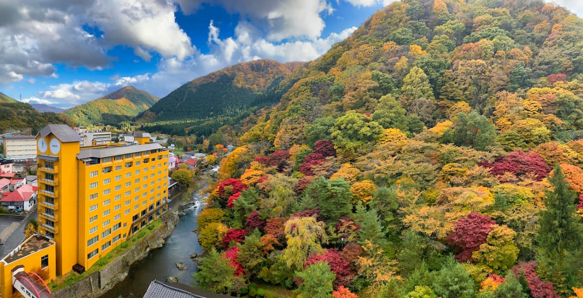 十和田湖と八幡平の中間にある湯瀬(ゆぜ)渓谷にある「湯瀬(ゆぜ)温泉郷」は、秋には美しい紅葉を眺めながら温泉に浸かれると人気の温泉地です。