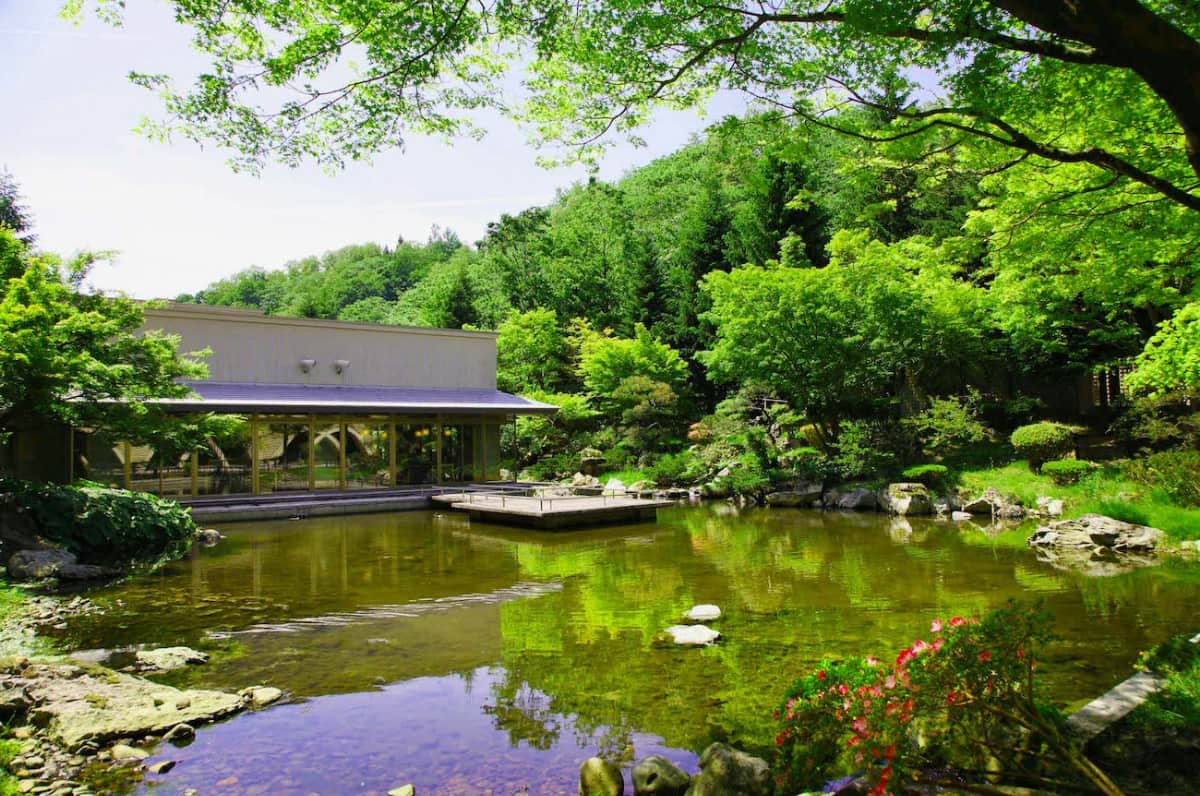 「大湯温泉ホテル鹿角(かづの)」は、大きな池と大滝のある美しい庭園が魅力のホテルです。