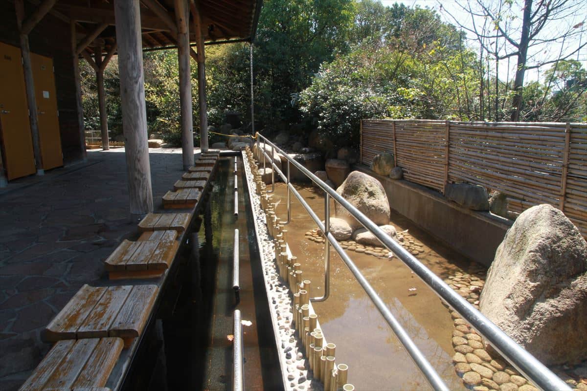 屋根がついているので天候に関わらず無料で利用できる「湾岸長島PA上り線 足湯」は、長島温泉の源泉を使用しているので、肌がすべすべになると評判です。