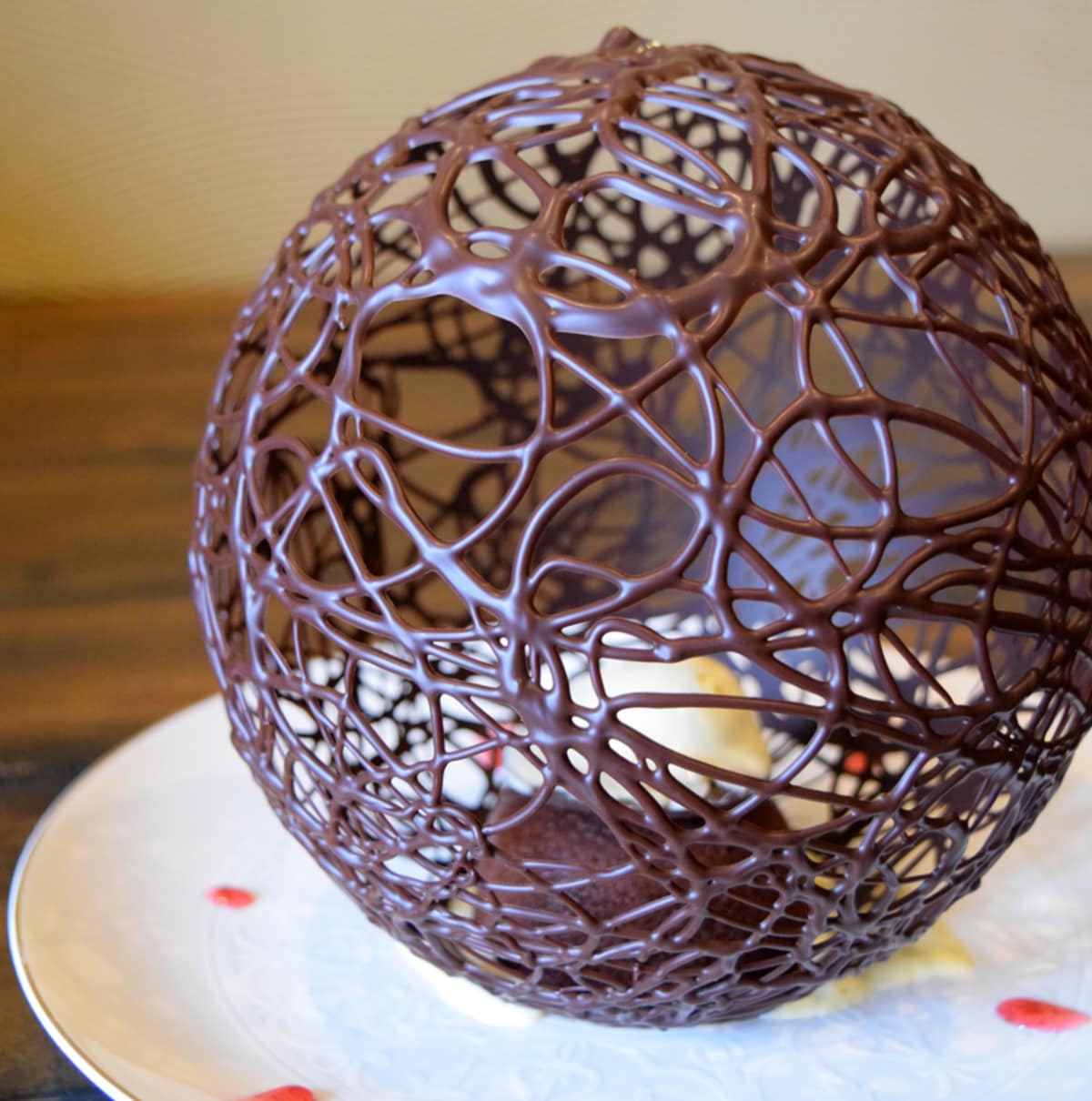 チョコレート好きなら挑戦したい「ショコラ ラバー」(1,980円)は、20cmもあるチョコレートのドームに温かいチョコレートソースをかけると、フォンダンショコラが現れる写真映えのする一品です。