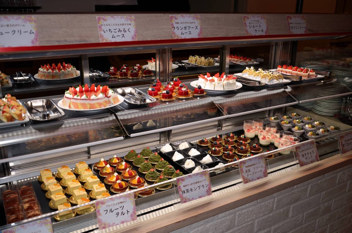 シェフが目の前で調理してくれる囲炉裏コーナーやオープンキッチンで、天ぷらや握り寿司、焼肉鉄板焼きをできたてで堪能できるのも魅力です。
