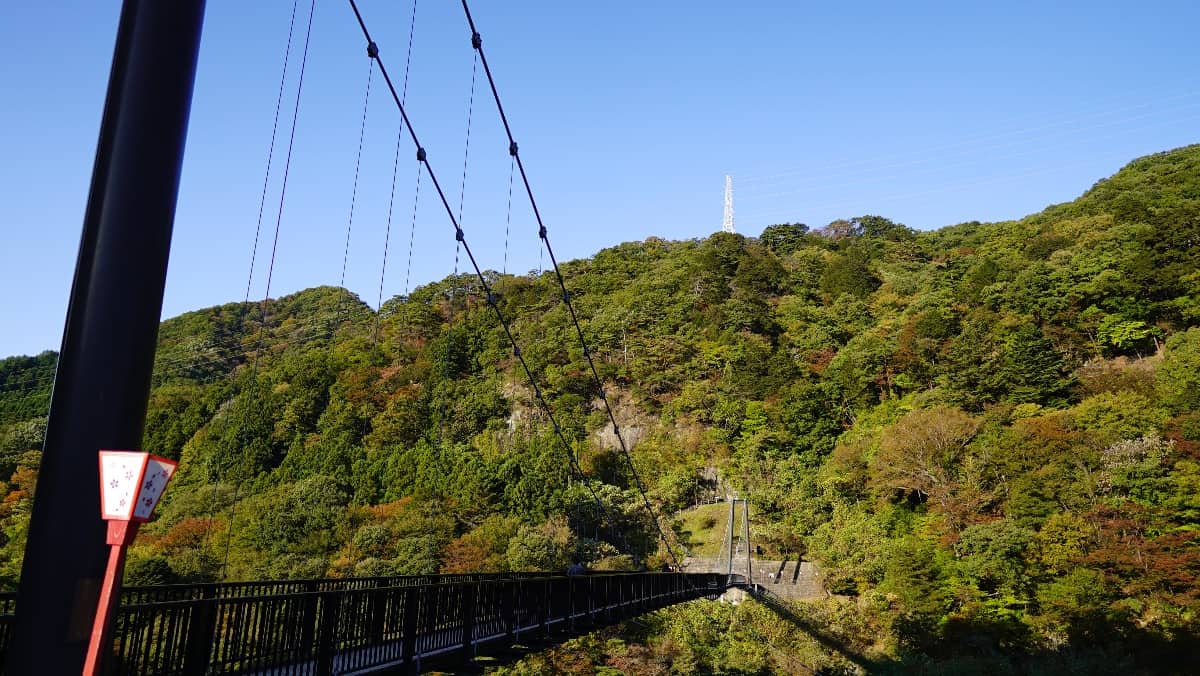 ふれあい橋は鬼怒川から高さ50mの地点に架けられており、橋から見下ろす鬼怒川の風景は迫力がありますが、橋まで登るには階段もあるので、足腰に自信のない方はご注意ください。