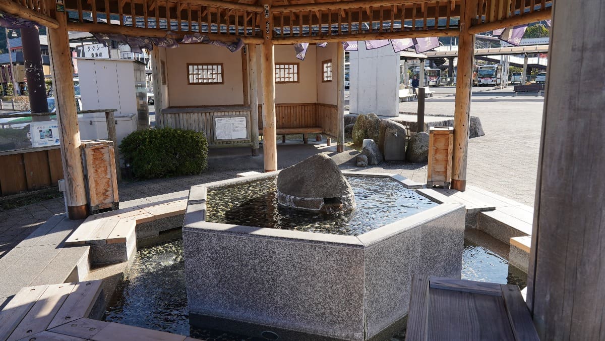 「鬼怒太の湯」は、鬼怒川温泉駅の駅前広場にある無料で利用できる足湯です。近くには鬼怒川温泉のキャラクターの鬼怒太の像が建っています。