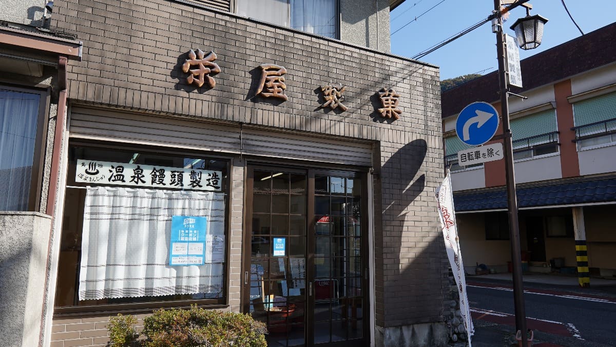 栄屋製菓(さかえやせいか)の「栗入り温泉饅頭」(150円)は鬼怒川温泉の名物手作り饅頭です。