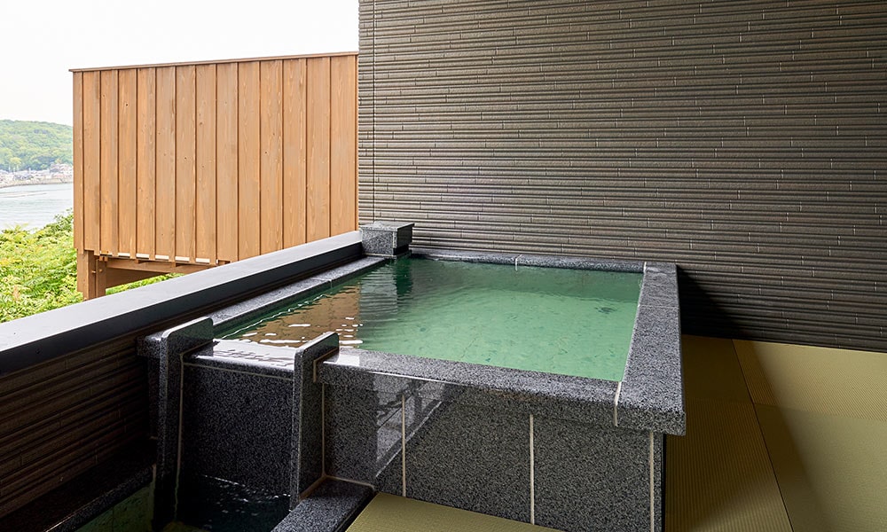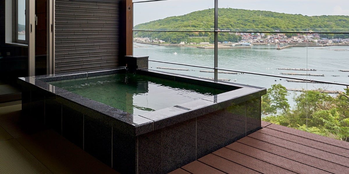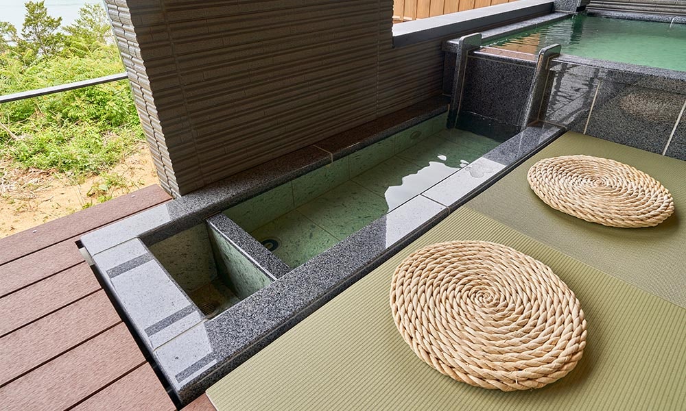 お一人でも、ご家族や気の合うご友人同士でも、気兼ねなくいつでも、海を眺めて湯浴みをお楽しみいただけます。