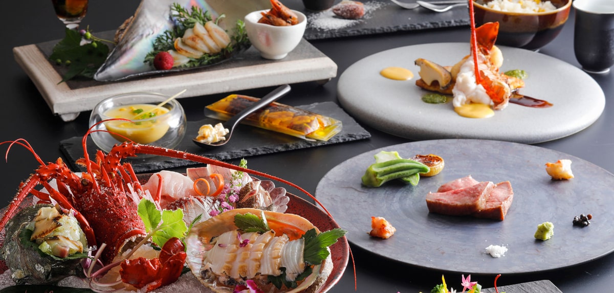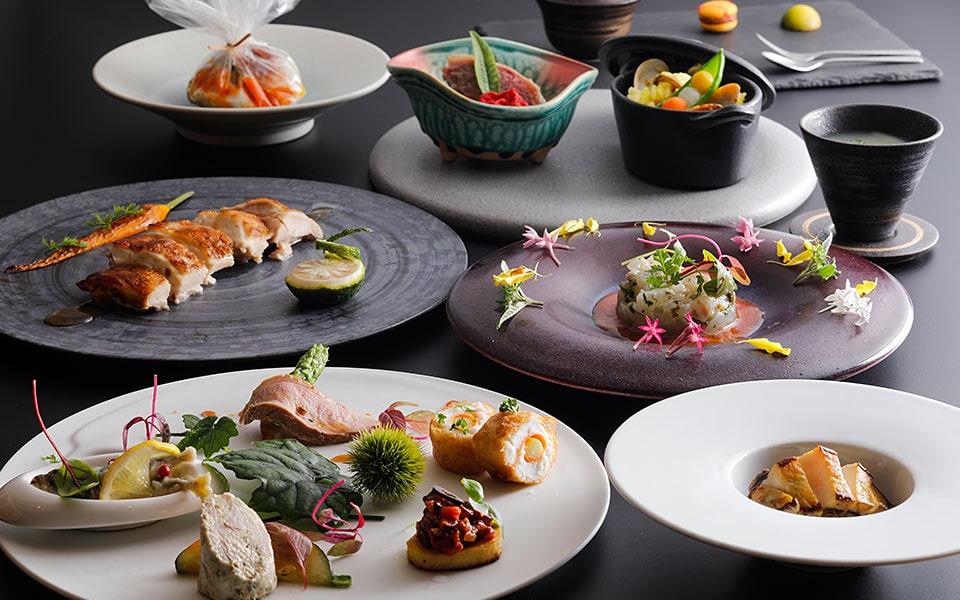 当館の調理を統括する総料理長はフレンチの出身であることから、お料理には和とフレンチのそれぞれの良さを抽出してミックスした懐石料理をご提供しています。
