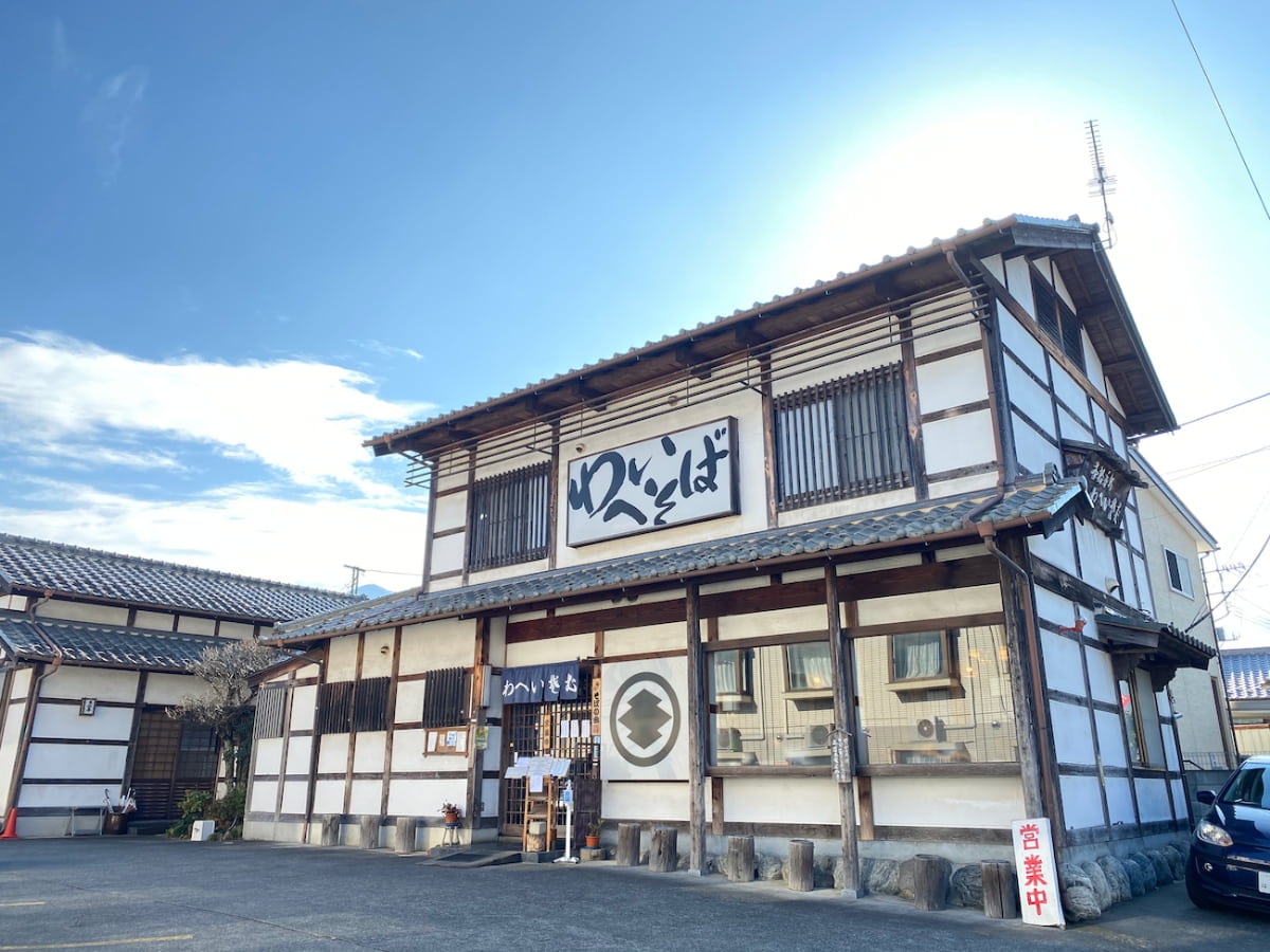 古民家風のくつろげる店内で、店主が丹精込めて打った自家製そばが堪能できる「本格手打ちわへいそば」。