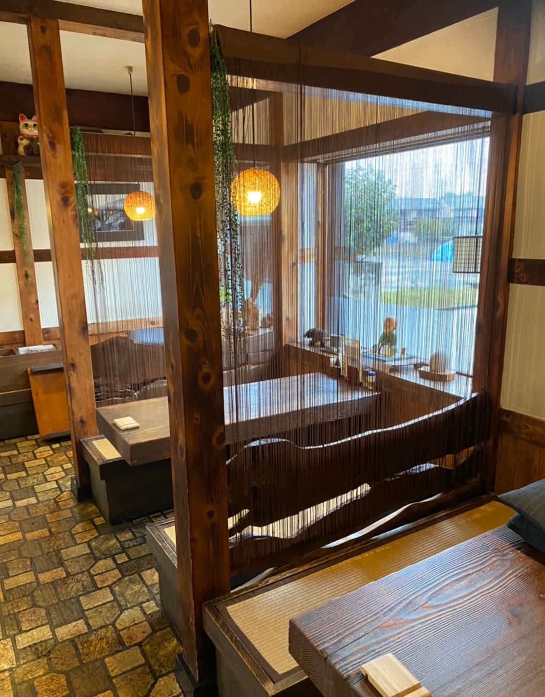 西武秩父駅から北東へ車で約5分。秩父平野を一望する高台に位置する「ちんばた」は、元は酒蔵だった建物を改装した木の温かみを感じる店です。