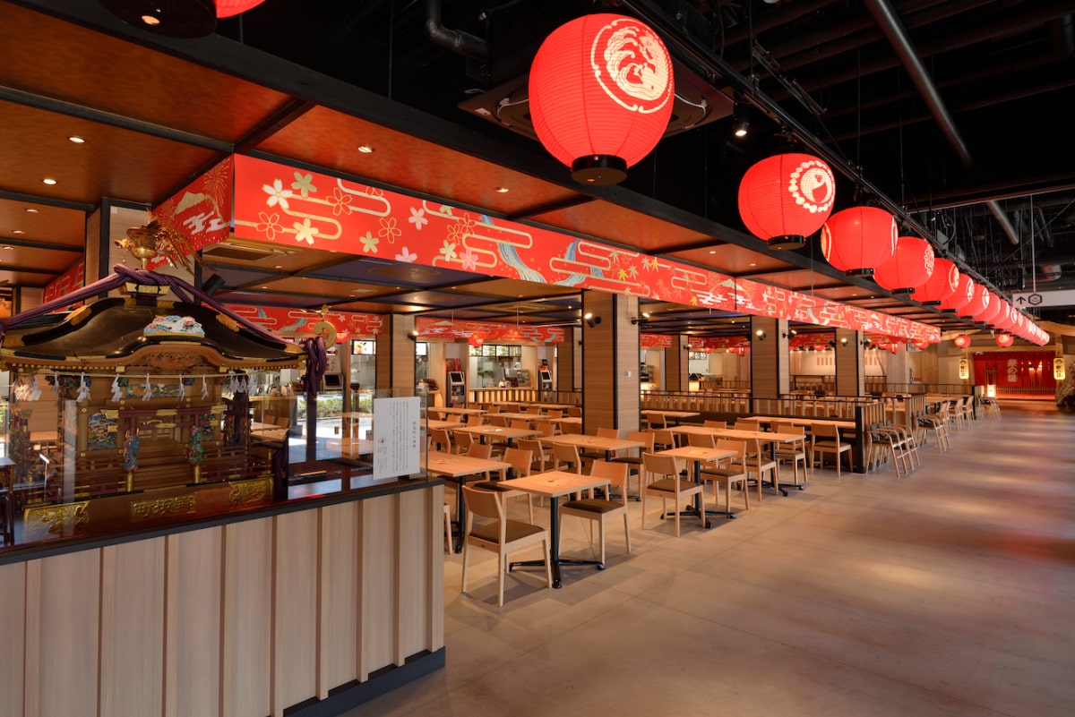 西武秩父駅前でひときわ目を引く、日帰り温泉施設「祭の湯」のフードコート「呑喰処(のみくいどころ) 祭の宴」は、さまざまな秩父名物がずらりと並ぶ人気のスポットです。