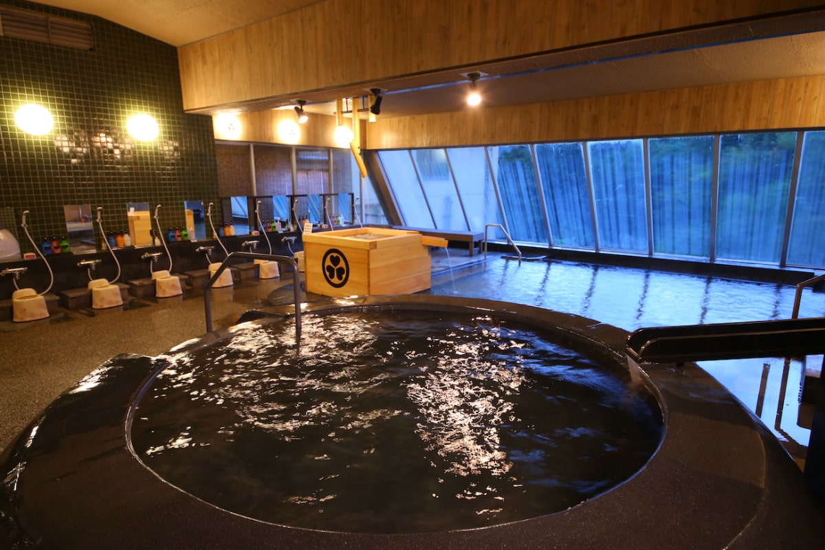 黒褐色の色が特徴の自家源泉をもつ「鳴子温泉 ホテル亀屋」は、泉質がナトリウム-炭酸水素塩・塩化物泉の「黒湯」に浸かれると人気の宿です。
