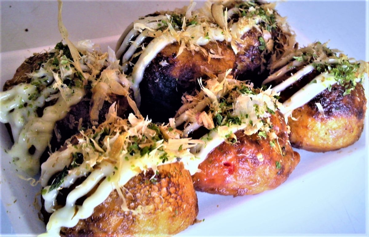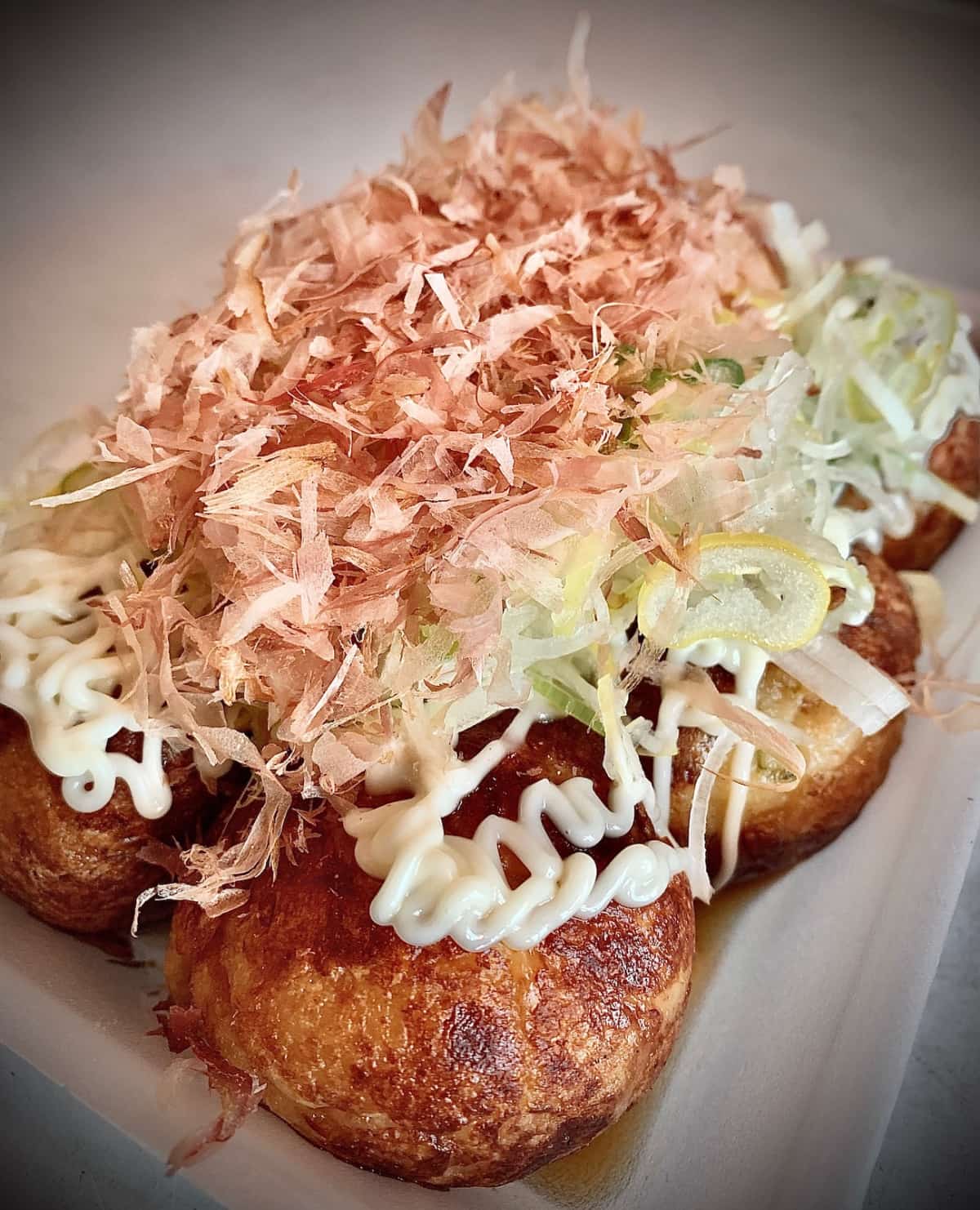 上にかけるソースをソースマヨ(マヨネーズ)と醤油マヨから選ぶたこ焼きは、だしと秘伝の粉を合わせた独自のレシピで、とろりとクリーミーな食感がやみつきになります。