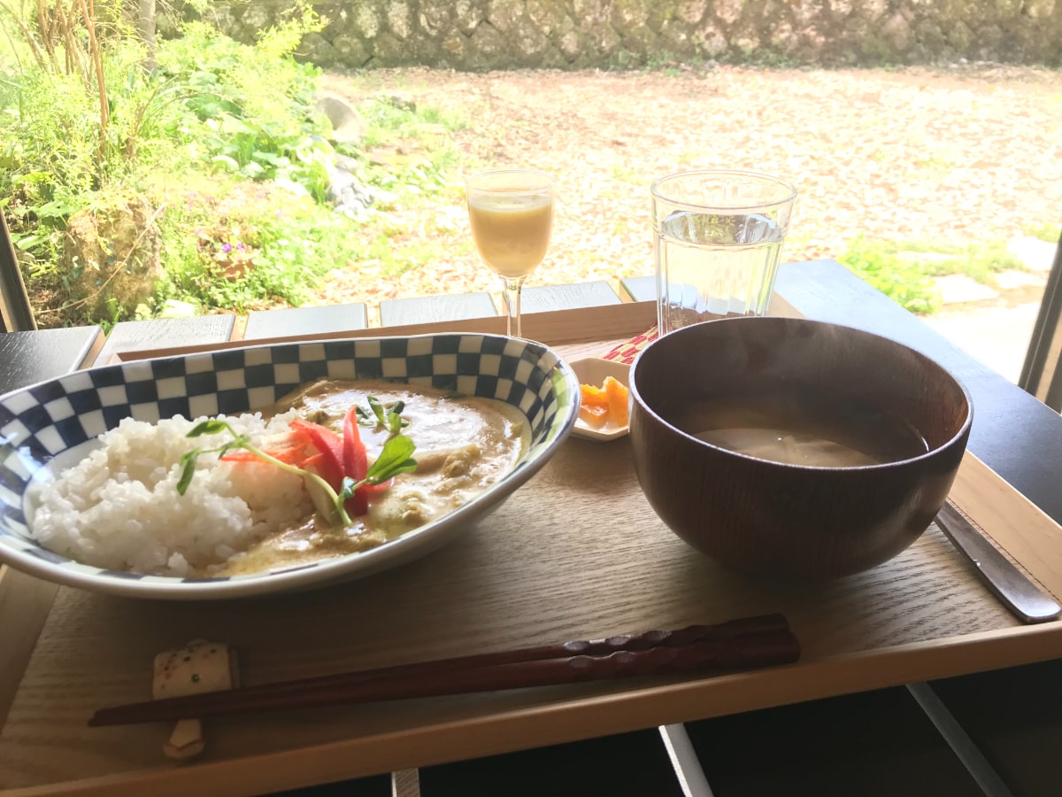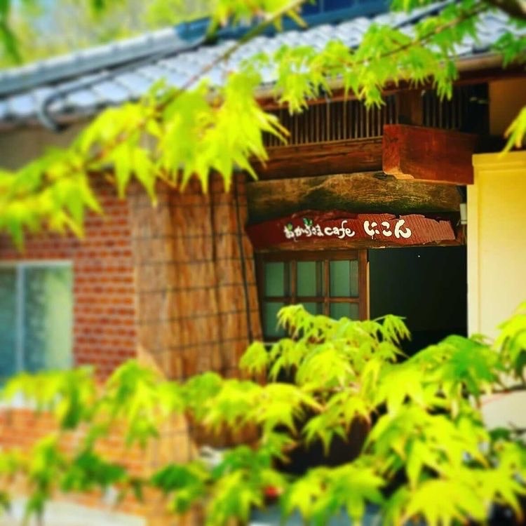 山里の古民家を改装した「おかげさまcafeにこん」では、土間や囲炉裏、縁側のある優しい空間で、麹や無農薬の食材を用いて土鍋などで作る、体に優しい料理が味わえます。