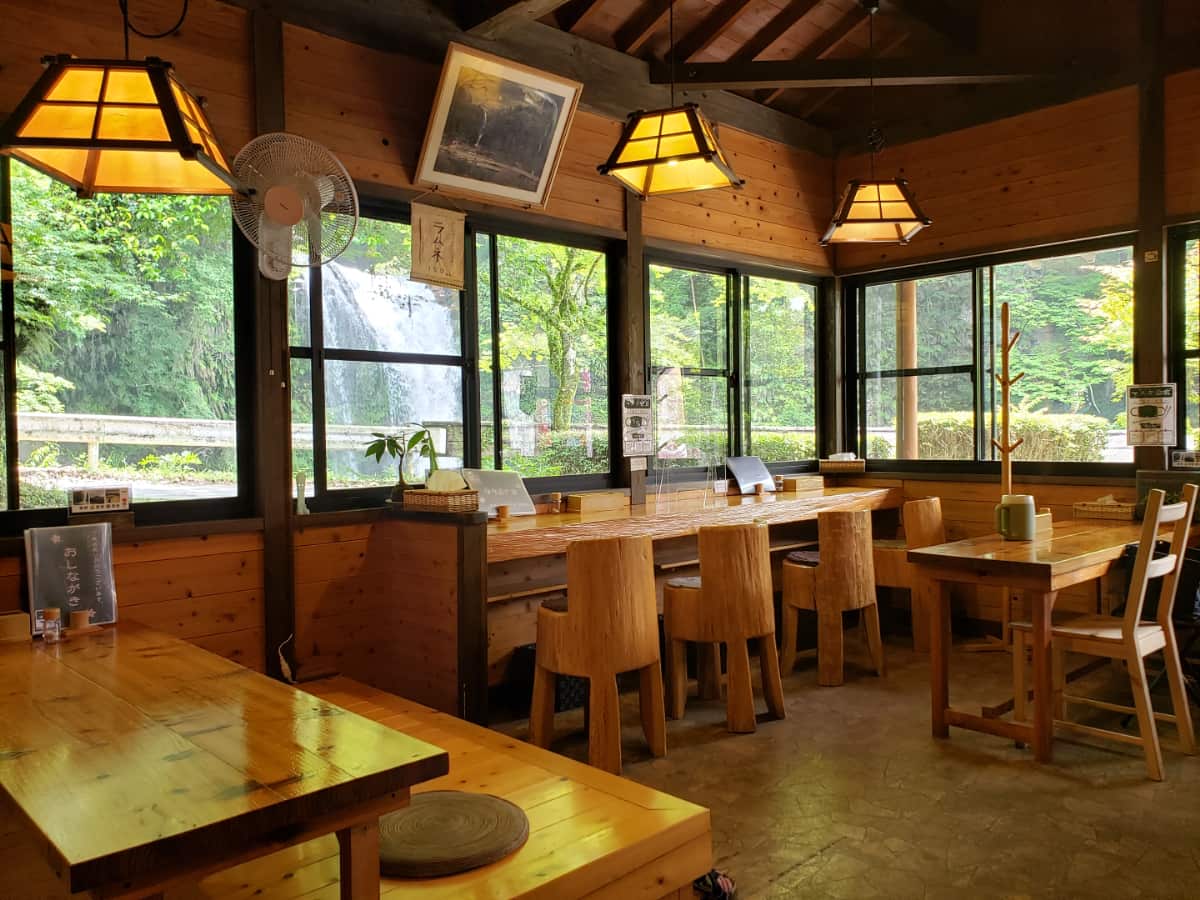 水量豊富で迫力満点の滝の姿を鑑賞しながら味わう蕎麦は格別。秋から冬の間は温かい蕎麦のメニューも登場し、身体を温めてくれます。