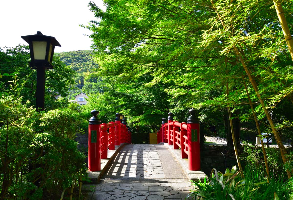 修善寺温泉の中心を流れている修善寺川(桂川)には、5つの朱色の橋がかかっています。