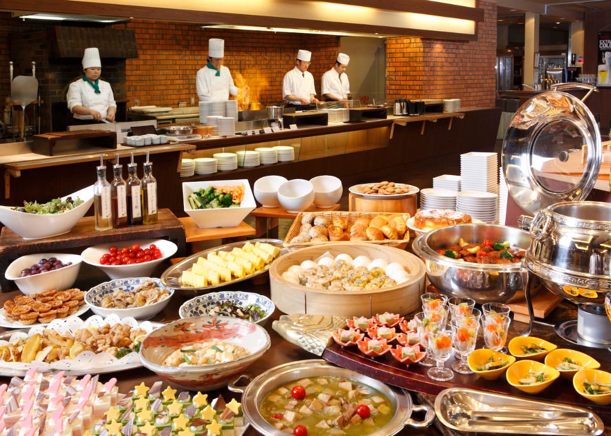 併設の「ホテルウェルシーズン」でバイキングを味わえる食事付きプラン(大人 3,432円〜)もあります。