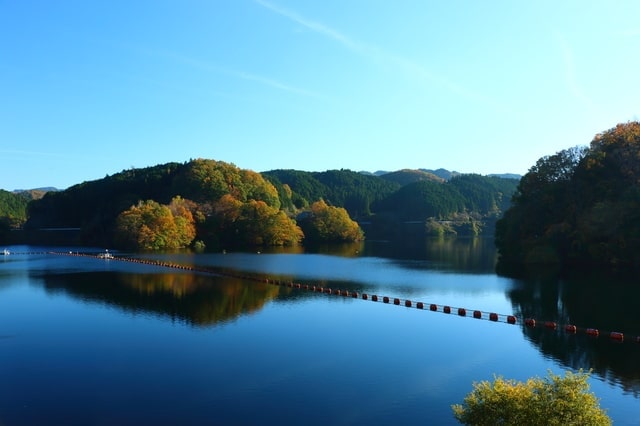 春は色鮮やかに咲き誇る山吹やツツジ、秋には燃えるような紅葉で一体が覆われます。