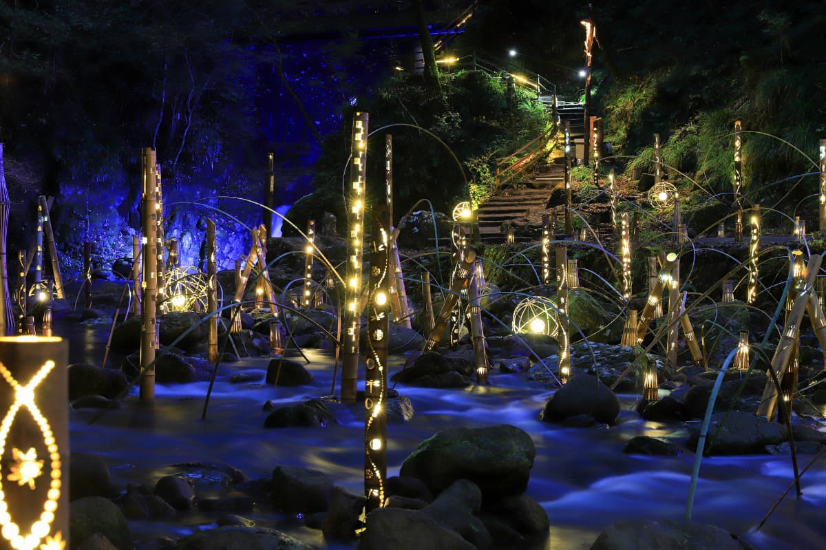 森の中にほんわりと灯る光が幻想的な空間を作り出しています。