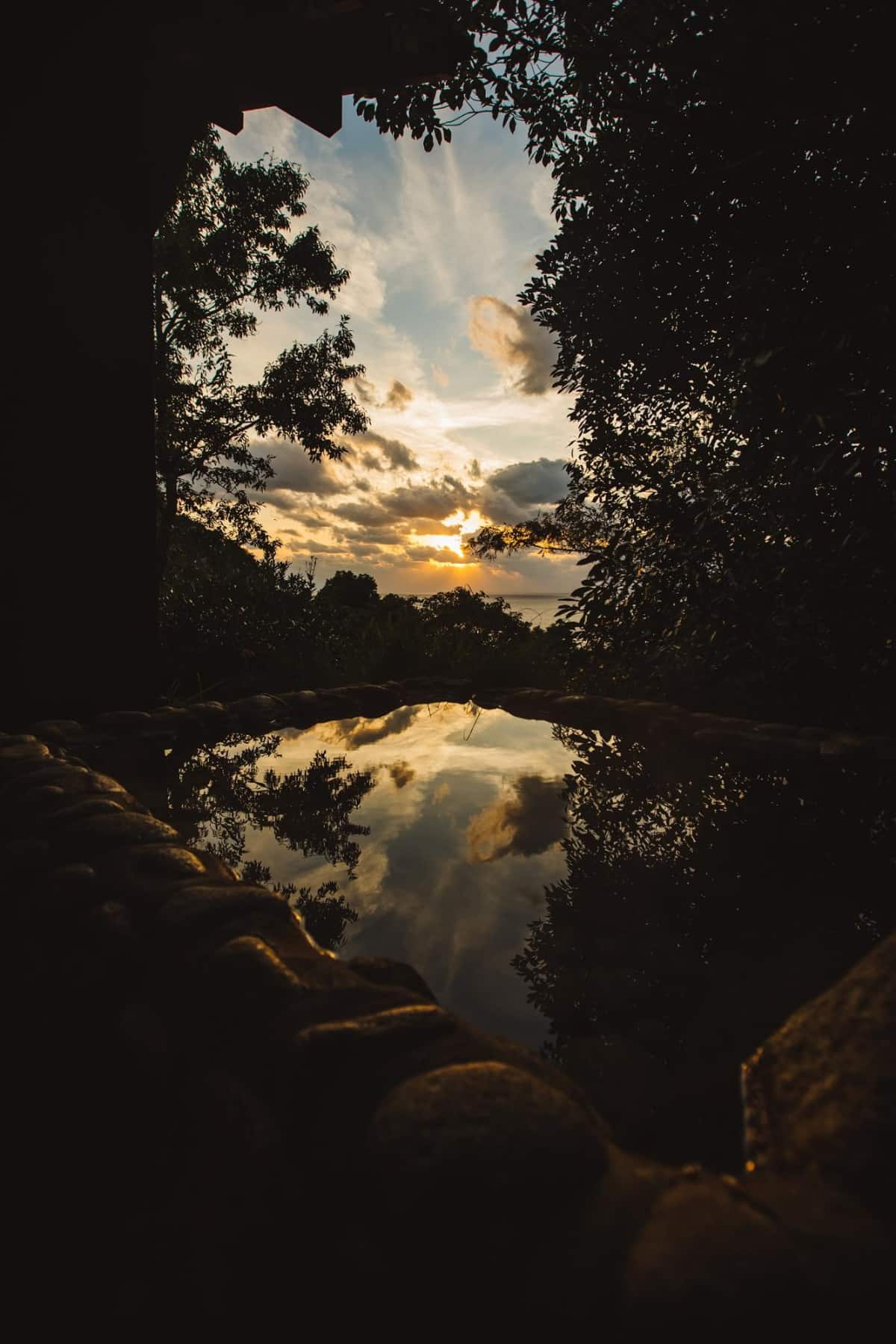 提供:石山離宮 五足のくつ(ヴィラC専用のカフェテラスから眺める夕陽)
