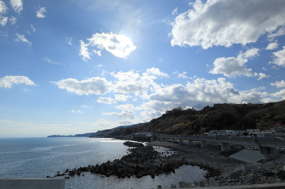 進行方向左側に相模湾(さがみわん)がバーンッと現れた瞬間、心奪われました…。