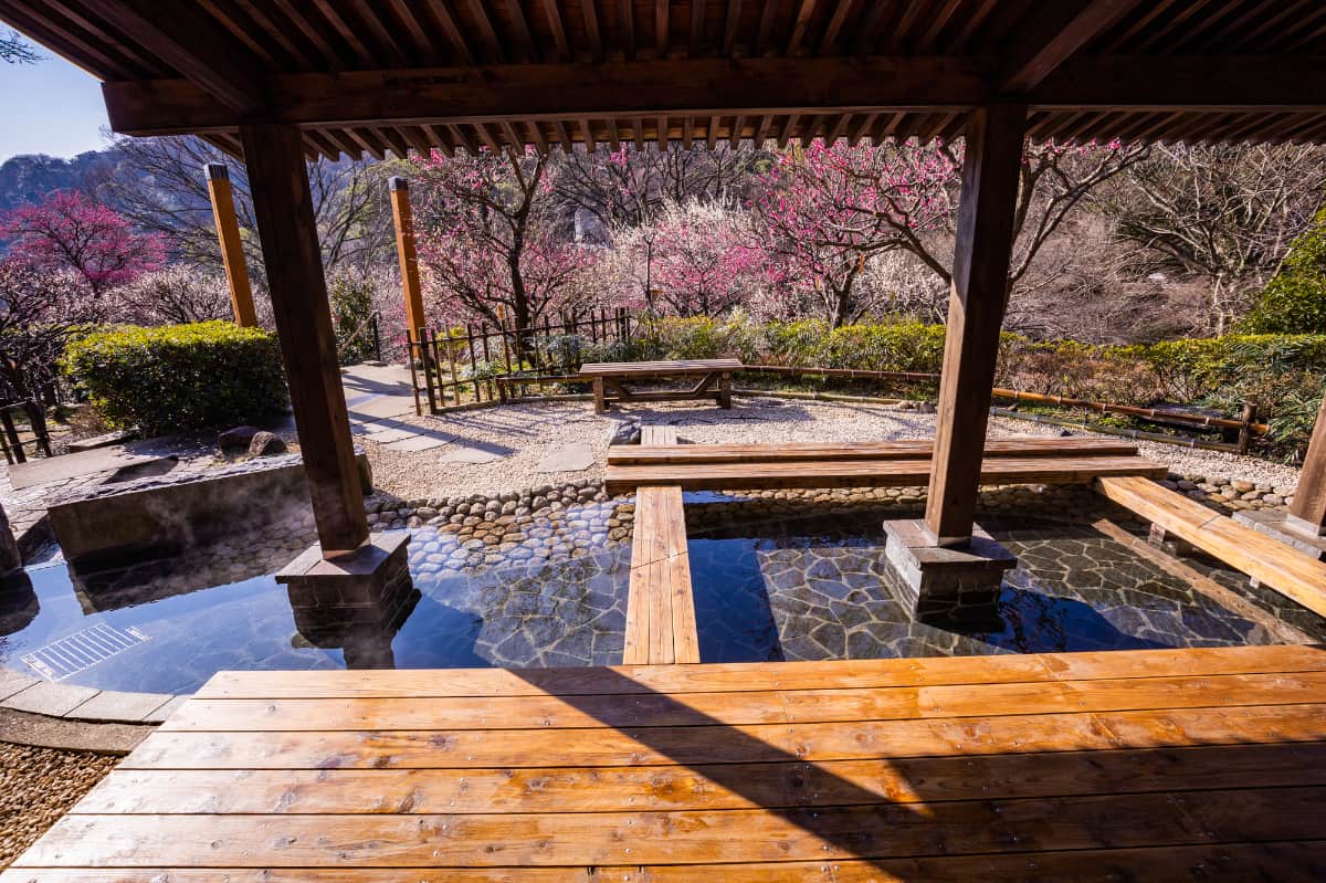 相模湾を望みながら湯を堪能できる露天風呂もぜひ。