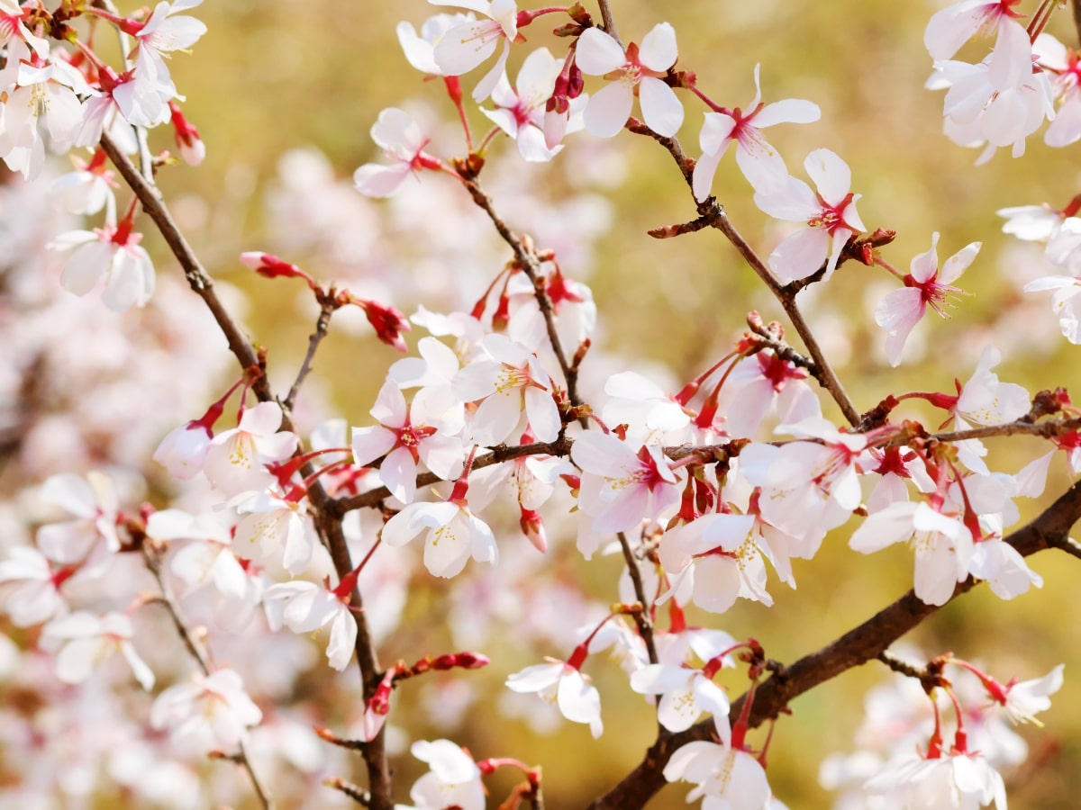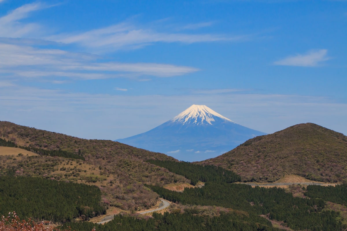 マメサクラの後ろに雄大な富士山が見える景色は、まさに感動ものです。