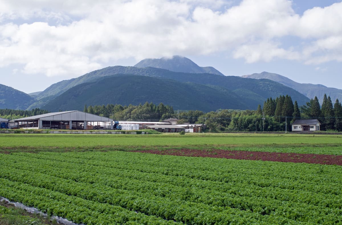 すぐ目前に、「日本の滝百選」に選ばれた「震動の滝・雄滝」などのある美しい渓谷「九酔渓(きゅうすいけい)」を、遠くには、壮大なくじゅう連山が望めます。
