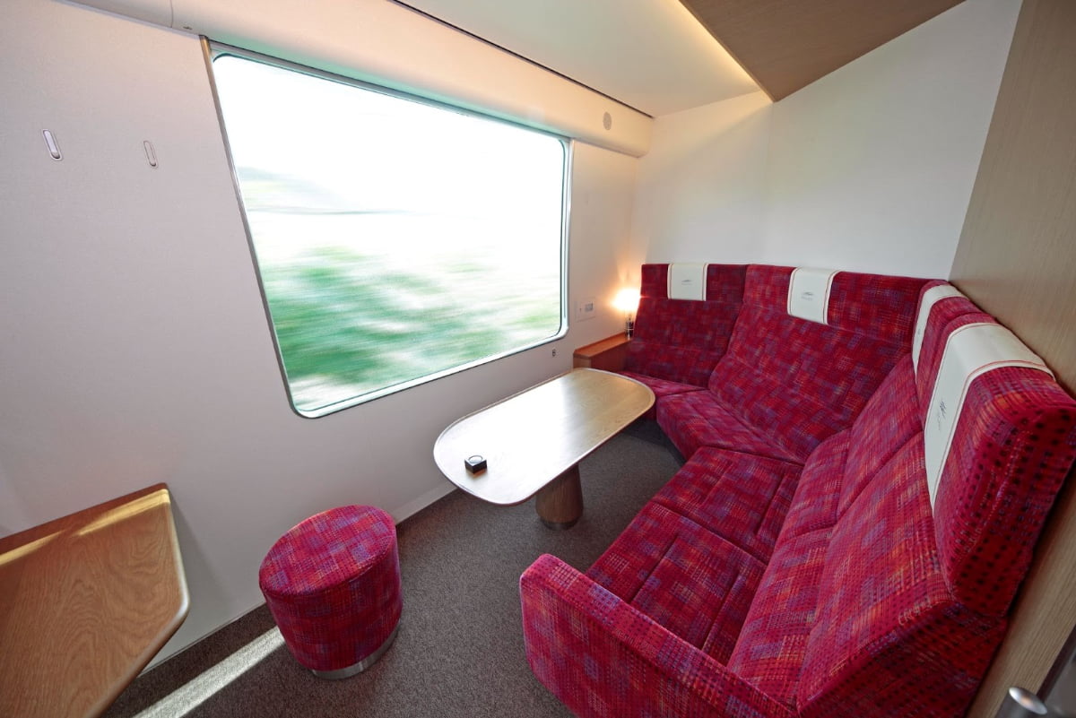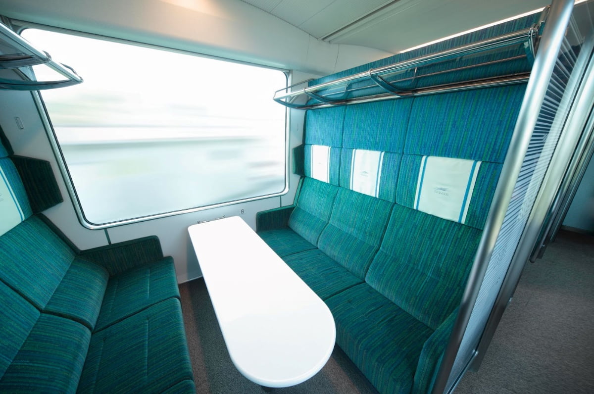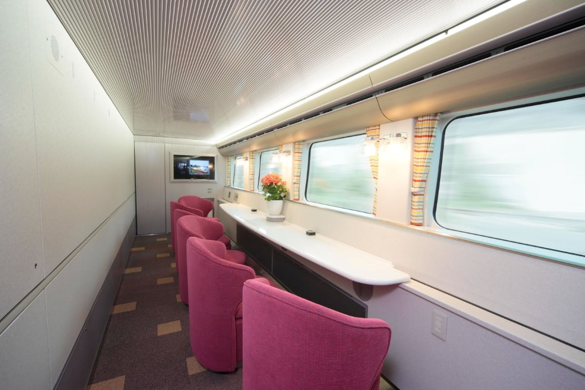 設備やサービスは驚きの連続。何より、3種類の座席のうち、プレミアムシートには長旅には嬉しい機能までついているなど、列車とは思えないほどです。
