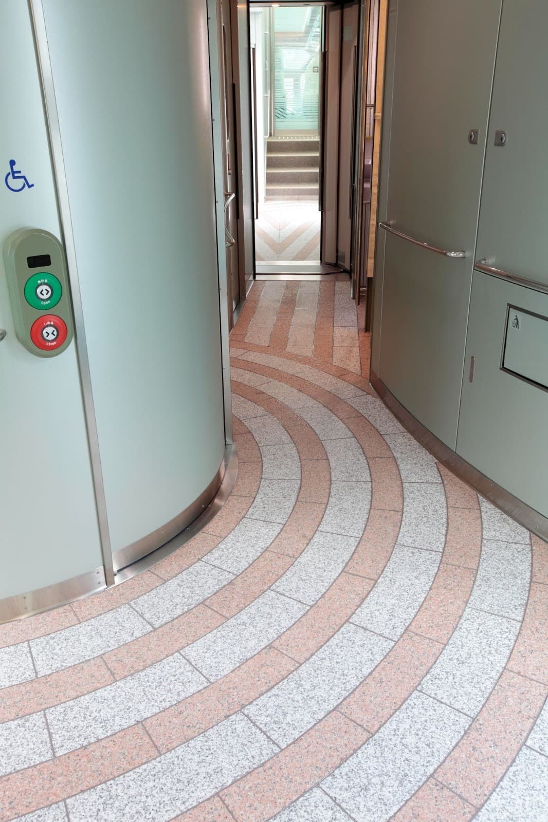 まず目についたのは、入り口の床面に敷き詰められた高級ホテルのような天然御影石。
