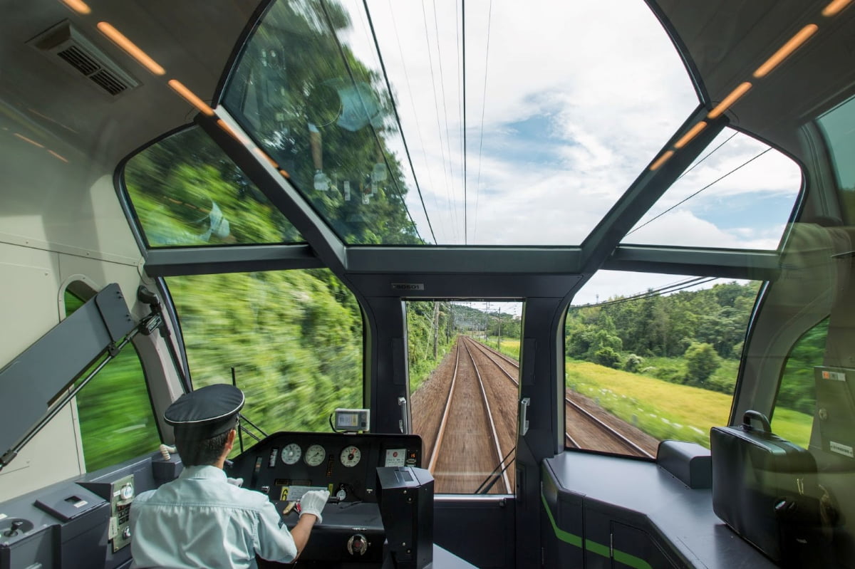 全面ガラス張りの展望車両は、景色を存分に味わいたい人におすすめ!