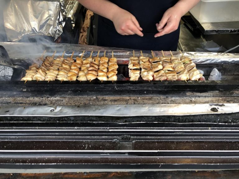 行列のできる人気店のやきとりを購入し、湯畑を見ながらランチタイムをとりましょう。