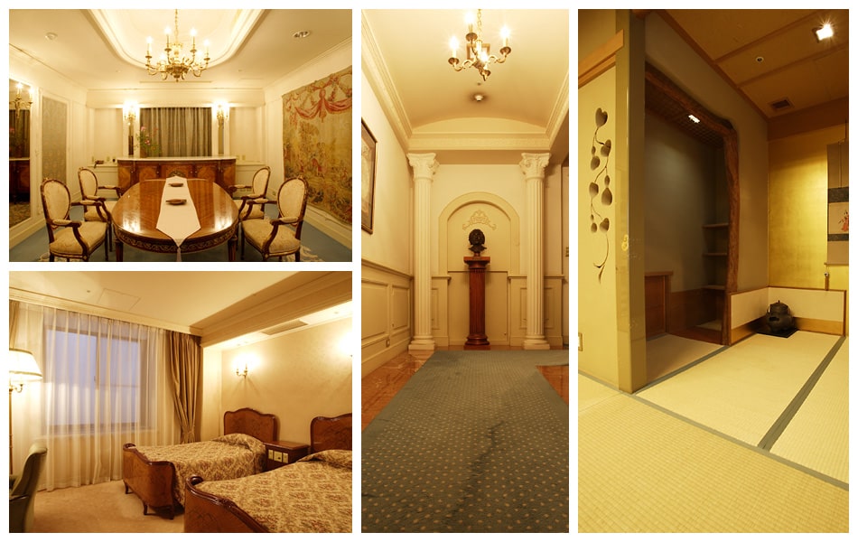 ◆塚越さん:西洋建築を取り入れたお部屋では、ダイニングやツインベッドルームを設え、家具調度品はフランスからイタリアまで買い付けに赴き、船で輸入したものを使用しています。