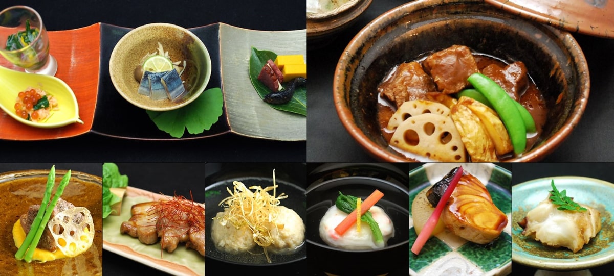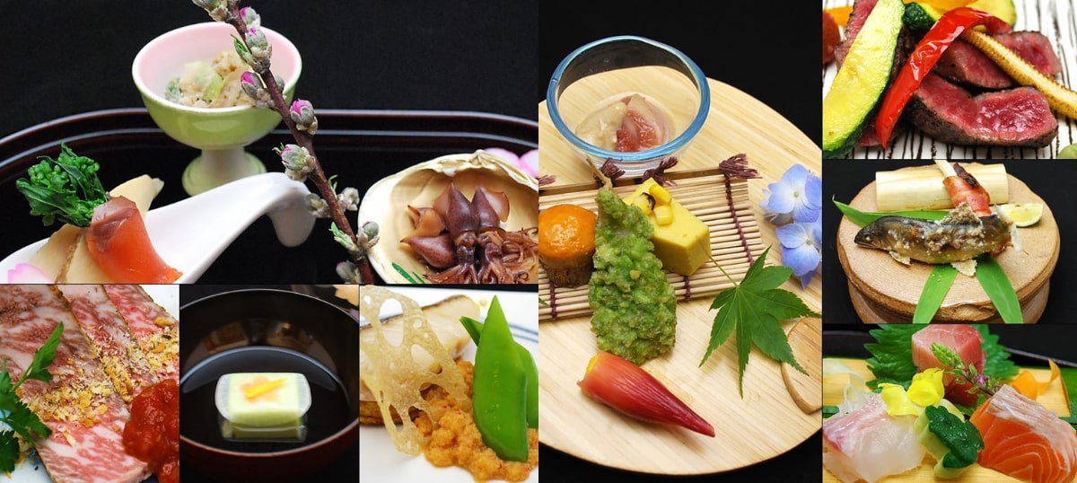 提供:香雲館(季節のお料理の一例:春(左上)、夏(右上)、秋(左下)、冬(右下))