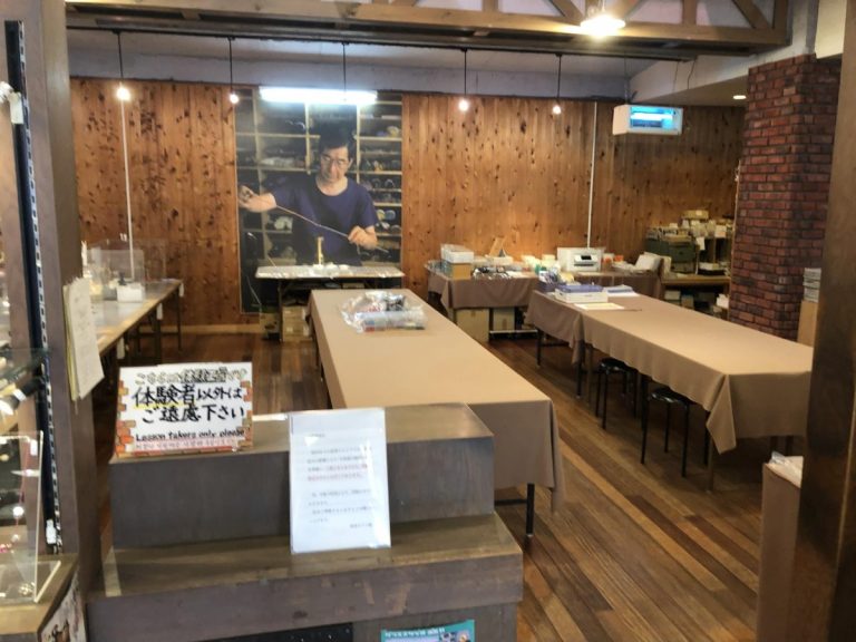 草津ガラス蔵では、ガラス玉創作など様々な体験ができます。