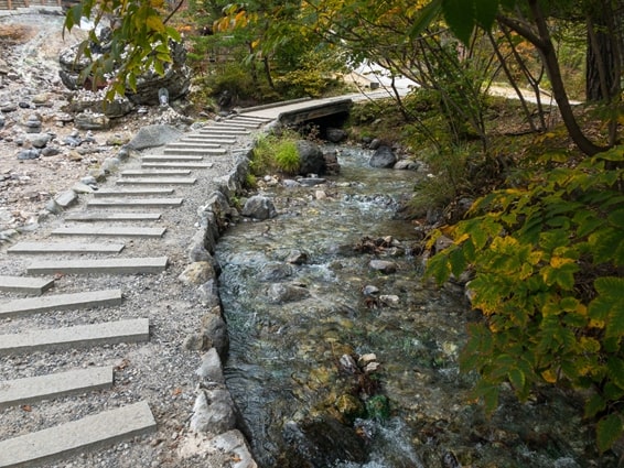 草木が生い茂る自然あふれる西の河原公園。紅葉した木々を眺めつつ、公園内の至る所で温泉が湧き出ているので温泉の香りに包まれながらゆったりとお散歩できます。