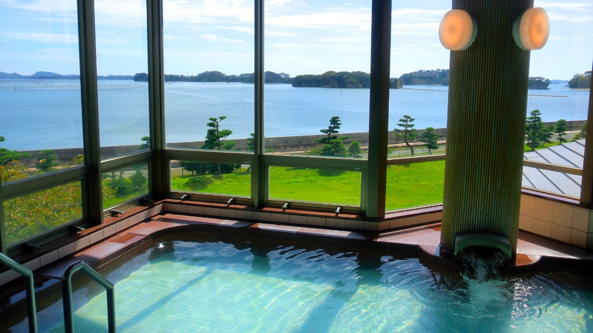 令和4年(2022年)3月より天然温泉になった大浴場では、大きな窓から松島ののどかな風景を眺めながら温泉に浸かれます。