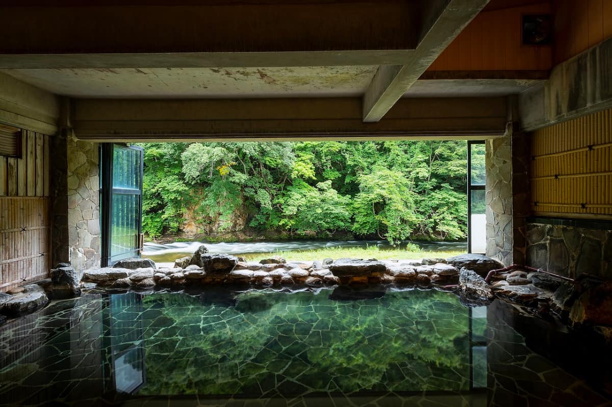 美しい豊沢川の景色とせせらぎに癒されながら温泉が楽しめます。