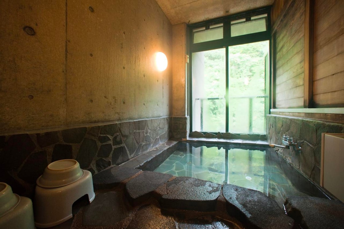 【旅館部・山水閣】春から秋は半露天風呂を楽しめる「豊沢の湯」