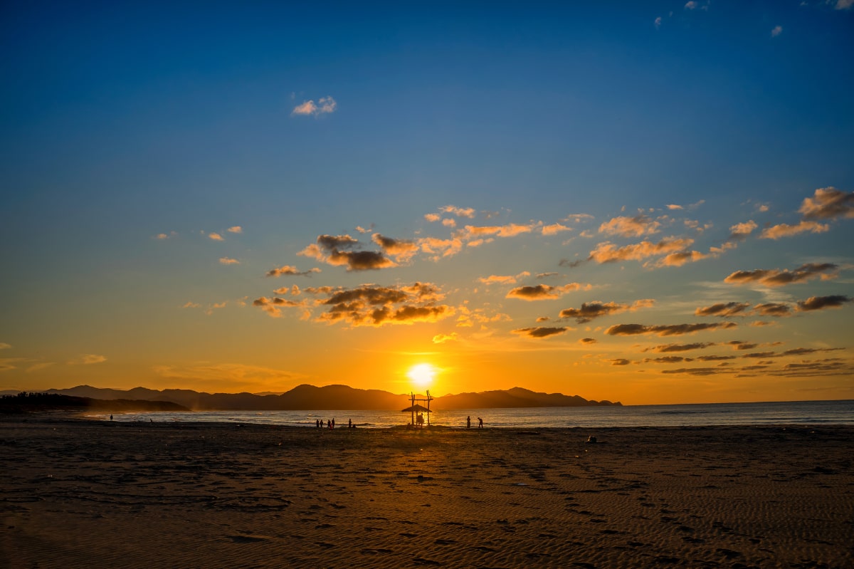 夕日ヶ浦海岸の夕陽は、「日本の夕陽百選」にも選ばれたほどの絶景。