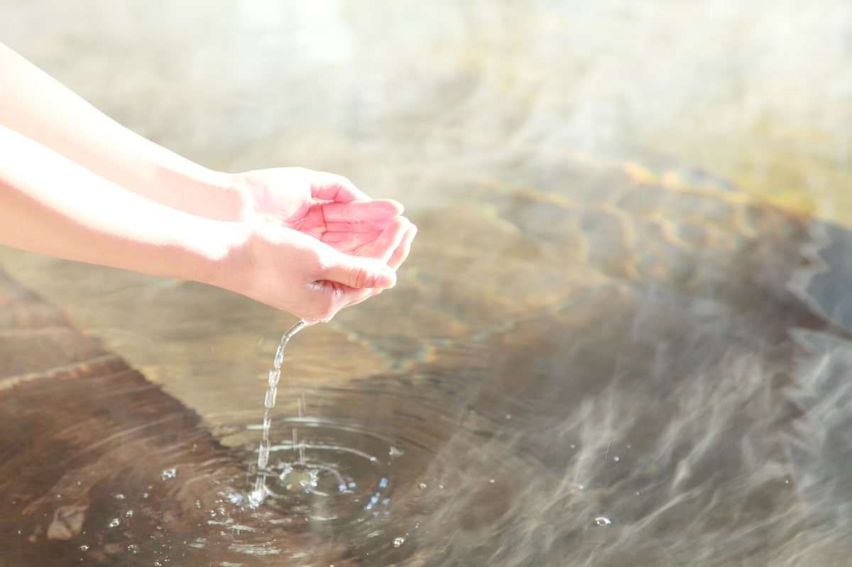 やや熱めのお湯で、ツルッとした肌触り。何度も浸かりたくなると評判の温泉です。