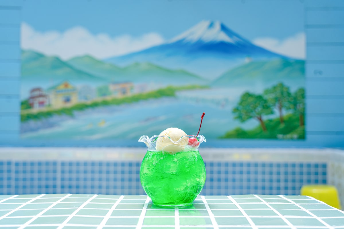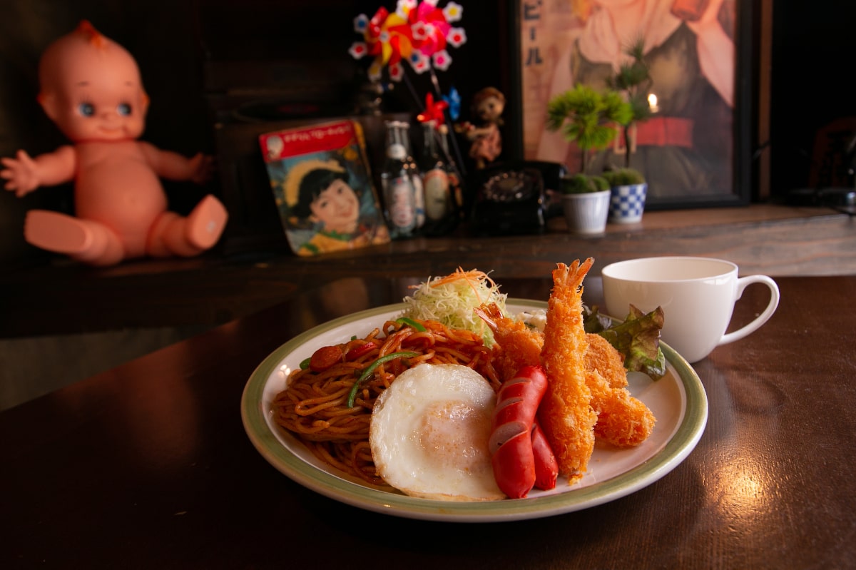 ナポリタンやクリームコロッケが一皿にのった「レトロプレート」(1380円)や「金魚鉢メロンフロート」(580円)、懐かしの揚げパン「給食おやつ」(500円)などが味わえます。