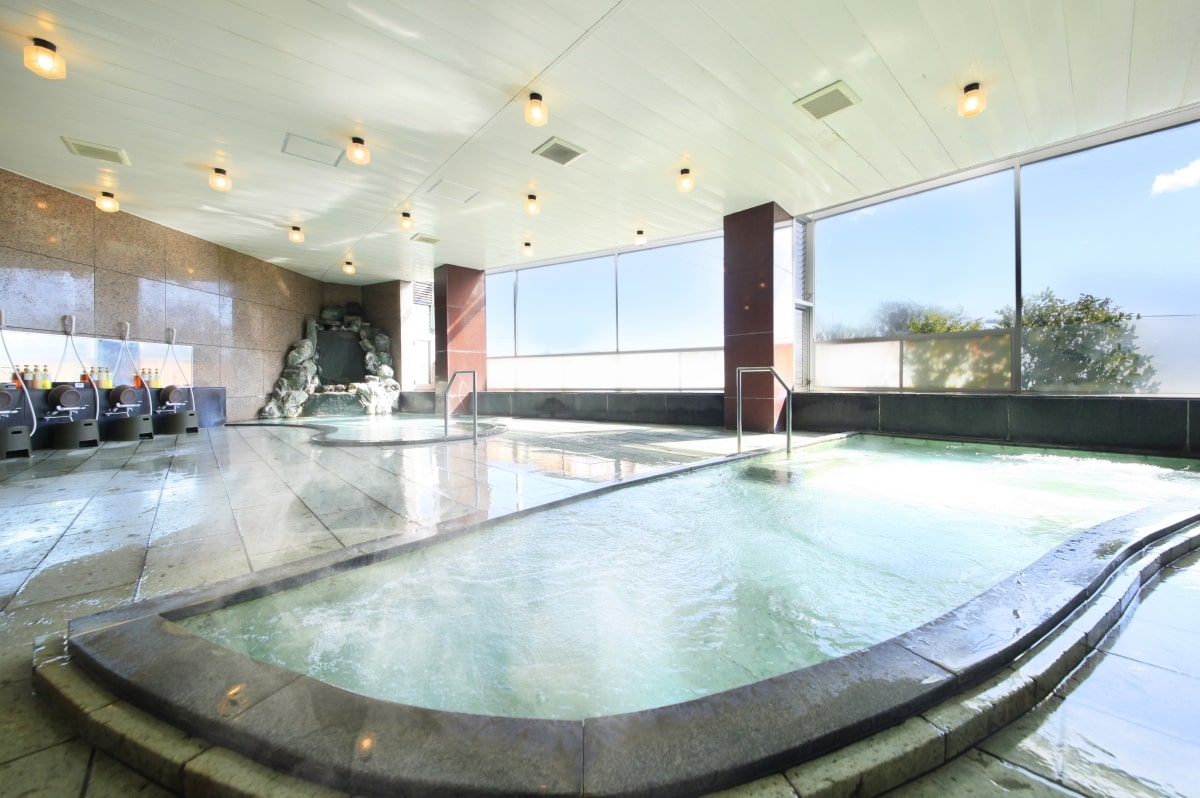大浴場では、遠くに天城連峰を望みながら伊豆温泉の源泉かけ流しを堪能でき、夜中でもゆったりと満喫できます。