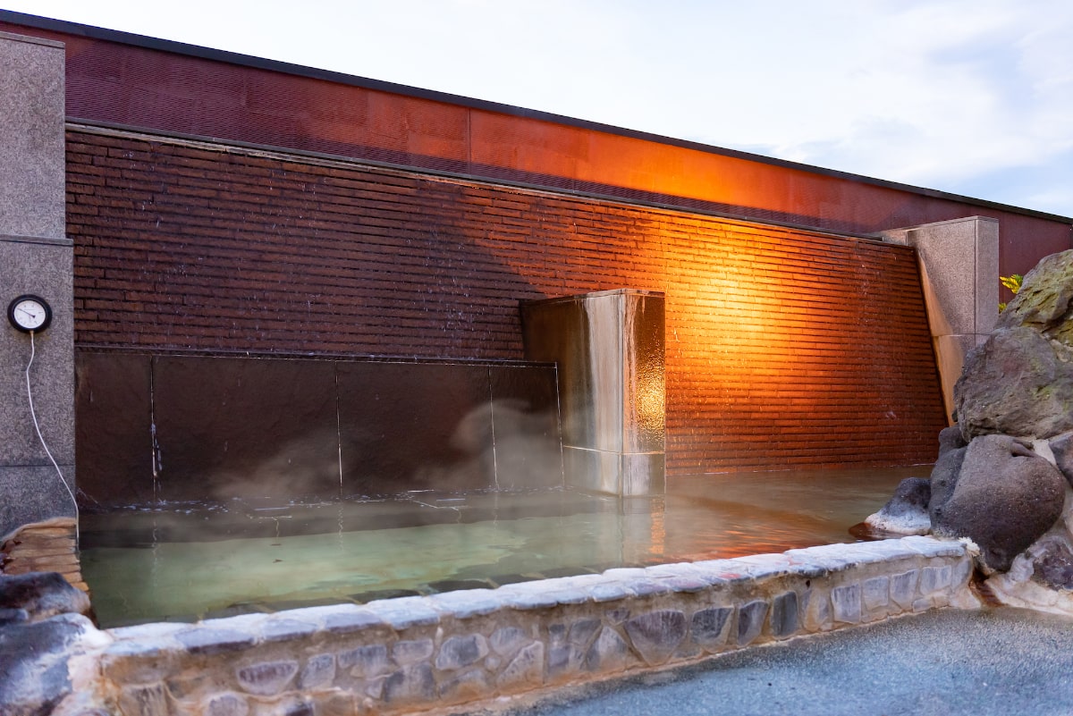 泉質は、ナトリウム・カルシウム-硫酸塩・塩化物泉で、動脈硬化・切り傷・やけど・慢性皮膚病などへの効能が期待できます。