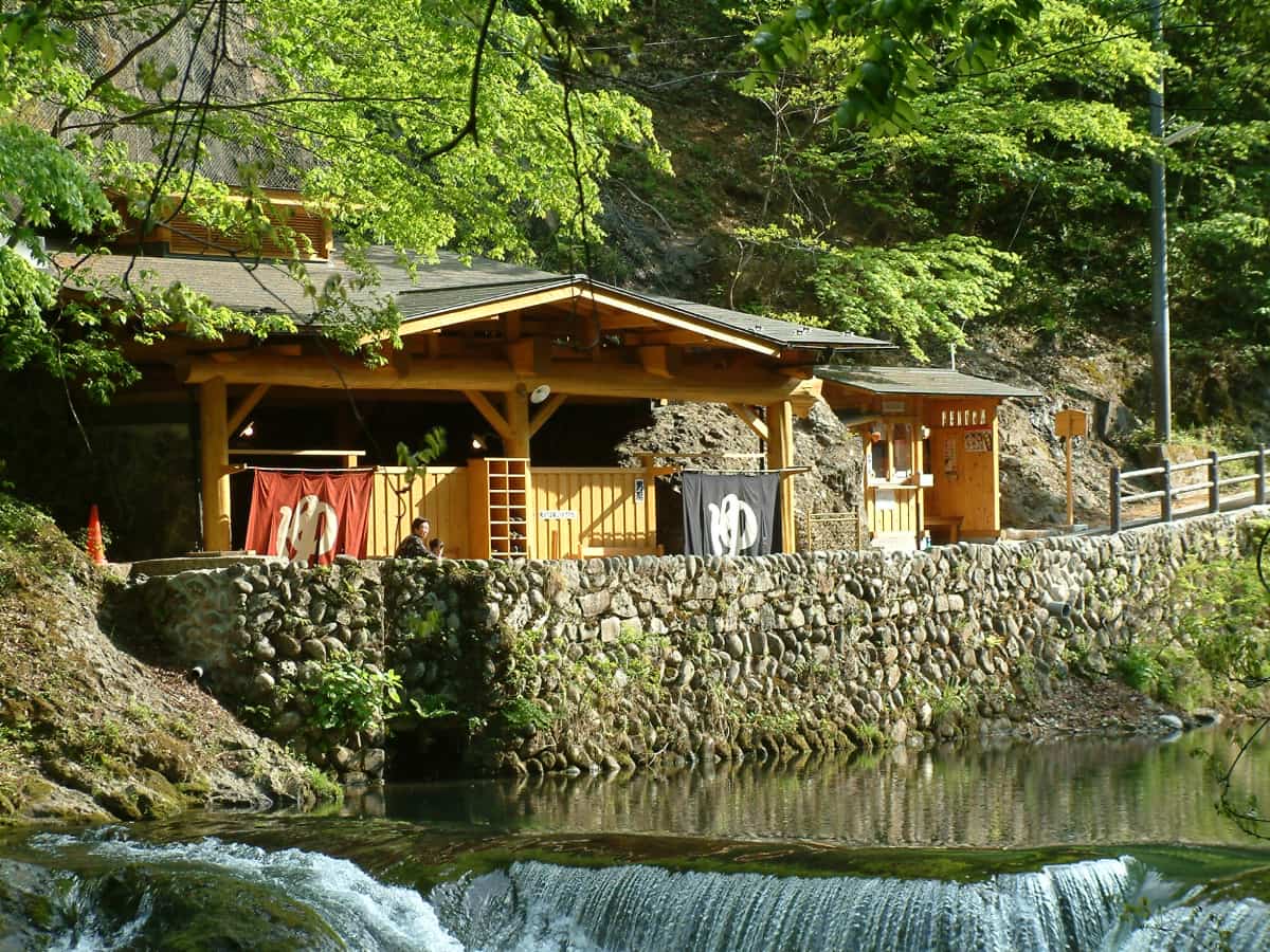 川沿いにある市営の共同浴場「岩風呂 かつらの湯」では、清流のせせらぎを聴きながら薬湯といわれる滑らかな肌ざわりの単純温泉を堪能できます。
