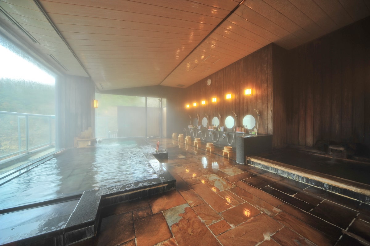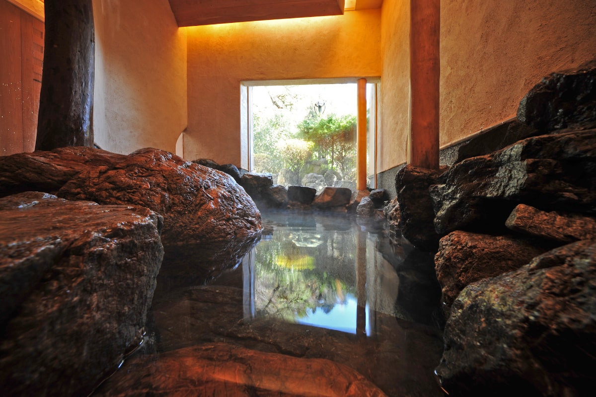 開放的な露天風呂のある大浴場では、四季を感じる美しく手入れされた庭園を眺めながら、メタケイ酸やメタホウ酸を含み、美肌の湯と評判のアルカリ泉質をゆったりと満喫できます。