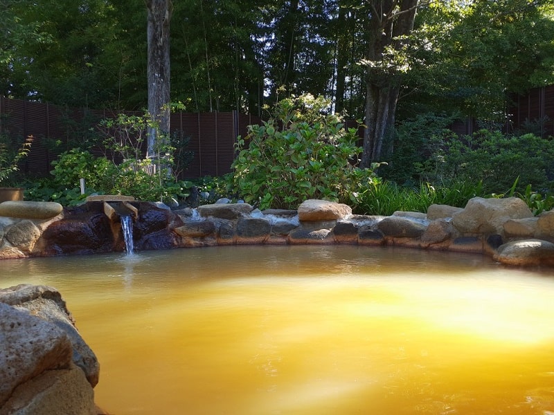 露天風呂では、体を芯からしっかりと温めてくれ、冷え性や疲労回復に効能が期待できる「白寿の湯」の運び湯を堪能できます。
