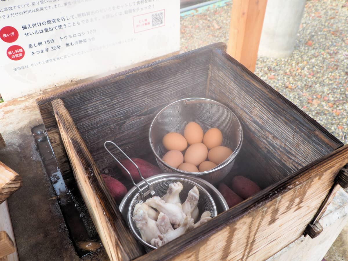 効能豊かな名湯を湯船で楽しむだけでなく、温泉の蒸気を利用した蒸し風呂体験や卵・野菜の蒸し料理を味わえるなど、さまざまな形で堪能できます。