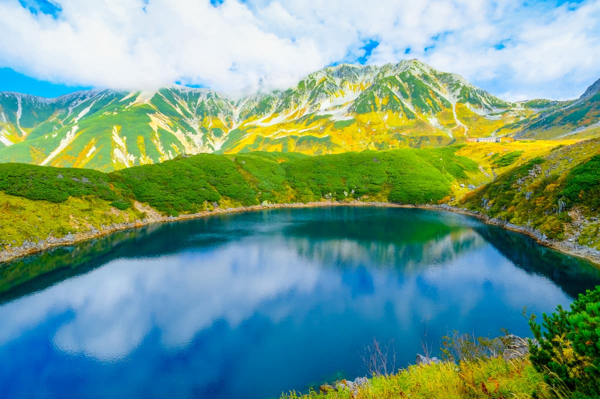 北アルプスで一番美しい火山湖といわれる「みくりが池」。