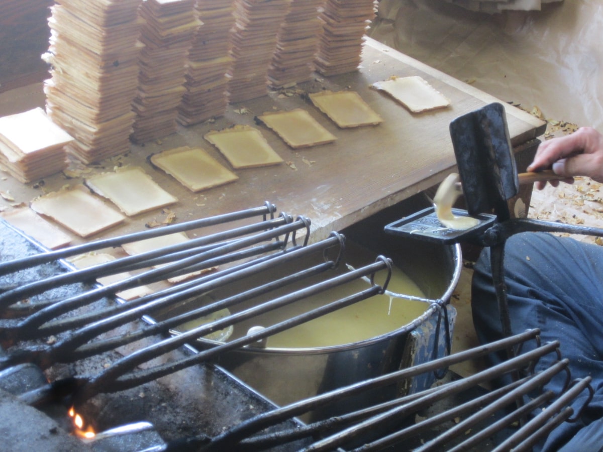 小麦粉と砂糖を主原料とし、磯部温泉の旧源泉である鉱泉水で練って焼き上げたせんべいは、ほんのり甘くサクサクパリパリの食感。